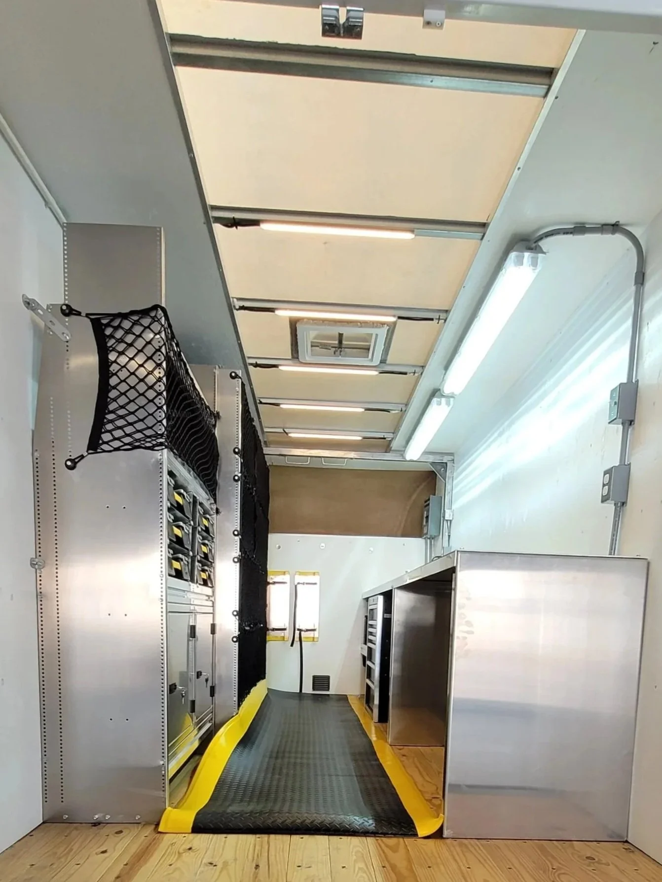 Custom shelving, ladder racks, refrigeration liners, and full fleet upfitting for commercial vehicles.